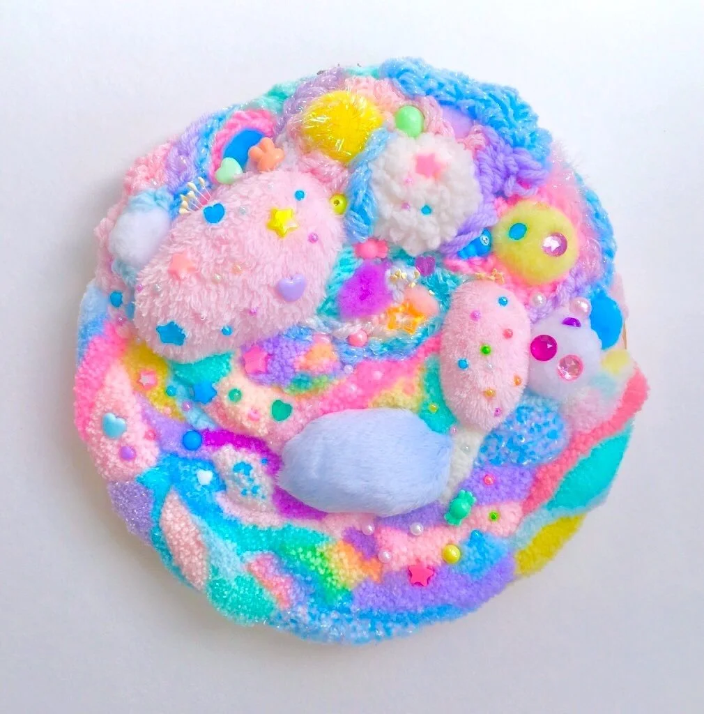 The content of my work is influenced by the media which sparks a sense of nostalgia in me. Whether or not I had any real, positive contact with these things as a child they capture the essence of stuff I remember being around. Fairy Kei, Vaporwave, toys and advertisements from the 1980s to 1990s, amongst countless other things have shaped the themes present in my current work. Many of the artists who I follow on various social media platforms through sharing their own art have shown me unique ways of thinking about how I can physically manifest my ideas in an interesting way with both media I’m familiar and unfamiliar with.