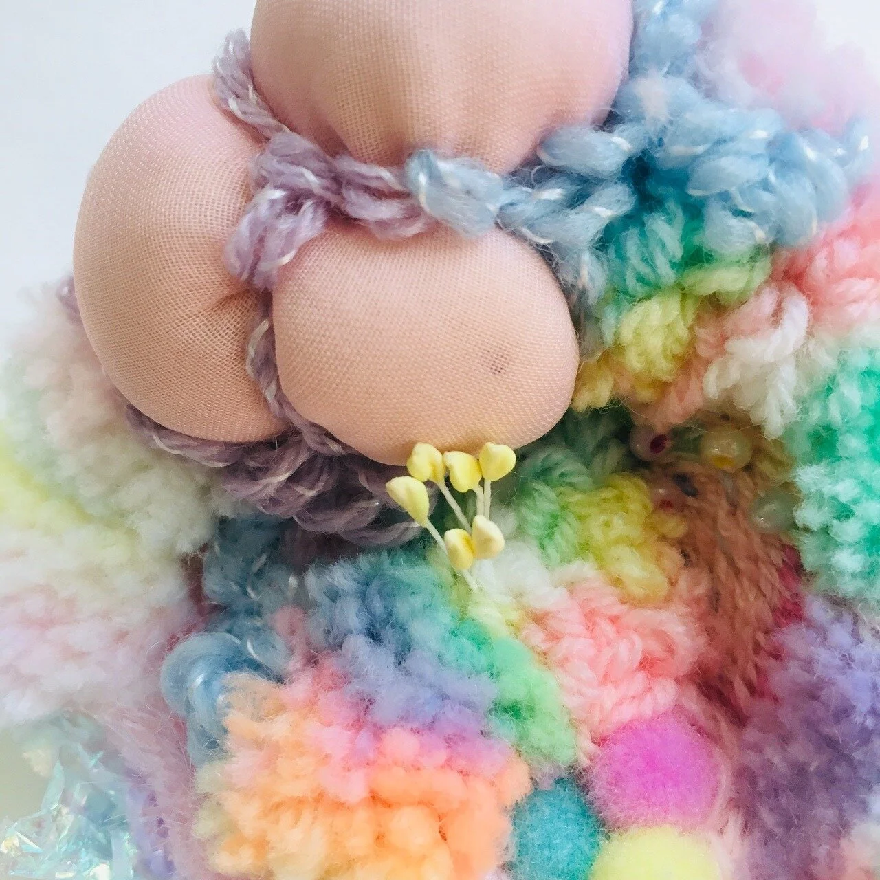 Aside from sharing relatively similar color palettes, the attempt to depict both nostalgia and decay in a singular work is present in both my collage and fiber work. However, with my fiber art I lean more heavily into representing the decay by vaguely referencing fungi or internal anatomy which has absorbed some of the overly saccharine motifs from my childhood. Where most may see soft, inviting environments in my embroidery pieces, I see pustule-like fungi or mold upon something which has gone rotten a long time ago.
